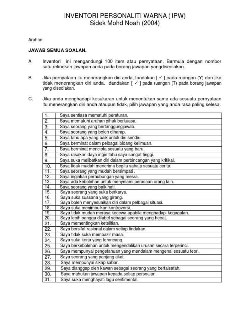 Inventori Personaliti Warna Ipw Pdf